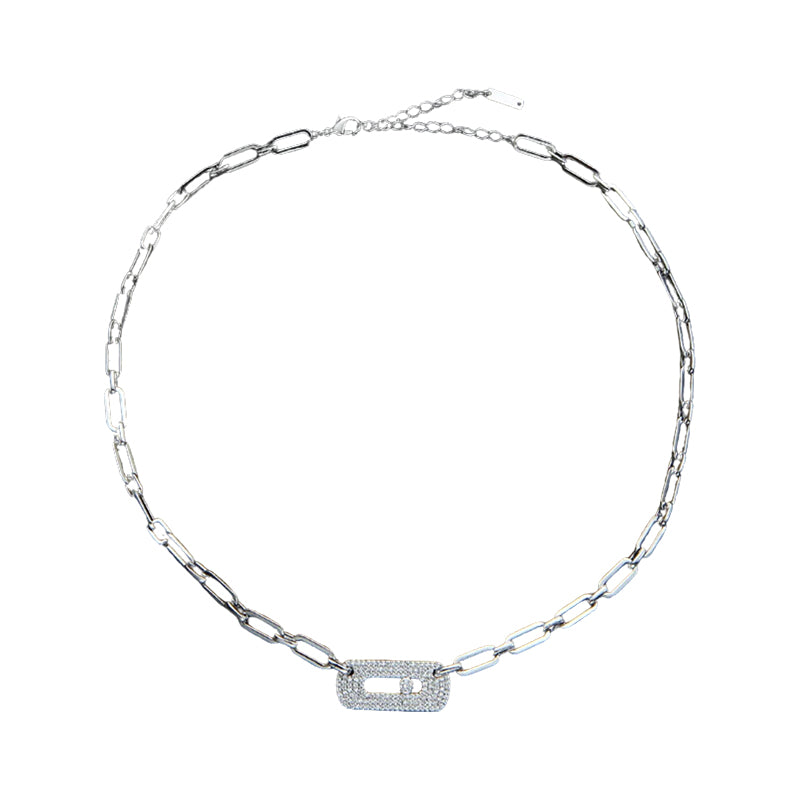 Fashion Micro Pave CZ Pin Link Chain Choker Necklace for Women