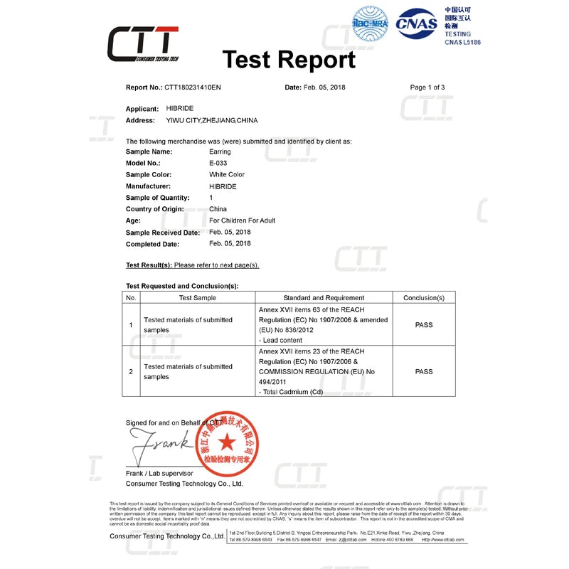 Environmental Standard: Lead, Nickel, Cadmium Free