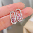These chic geometric earrings showcase a modern design, with striking geometric shapes that add sophistication to any outfit. The sparkling zircons set into the earrings catch the light beautifully, creating a striking glow.